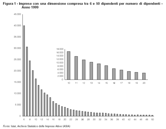Nell’acceso dibattito intorno all’ipotesi di eliminazione dell’articolo 18 si afferma spesso che esso sarebbe di freno alla crescita dimensionale delle imprese, con tutto quel che ne consegue in termini di ricadute sulla scarsa competitività del sistema produttivo italiano. Le evidenze empiriche disponibili non sono tuttavia in grado di evidenziare l’emergere di un “effetto soglia”, ovvero di una discontinuità nella distribuzione delle imprese per dimensione di addetti intorno alla soglia dei 15 dipendenti, discriminante secondo il dettato dell’articolo 18.