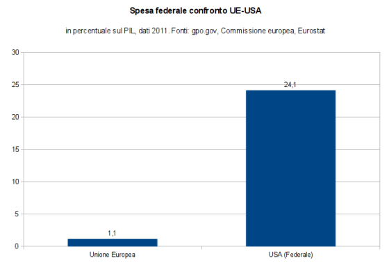 Già in passato abbiamo sottolineato l’esiguità del bilancio europeo, pari a poco più dell’1% del PIL dell’Unione. Una misura ridicola se confrontata con quella di un vero stato federale, come gli USA: