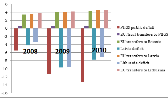 Insomma, un’occasione persa. Eppure un livello federale finanziatore potrebbe funzionare, come dimostra l’esperienza delle Repubbliche baltiche, la cui austerità locale (peraltro non particolarmente pesante) viene compensata e ampiamente superata dai trasferimenti dell’UE.