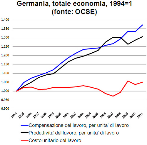 “… in germania il salario è aumentato dell’1,25% annuo la produttività dello 0,87,l’inflazione dell’1,52 … ”