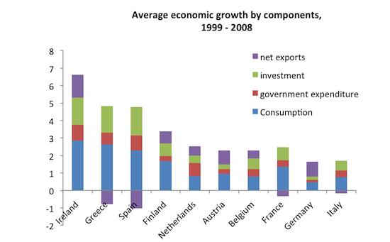 Il che ovviamente ha portato la Germania a crescere grazie alle esportazioni, mentre gli altri paesi si sono dati al consumo (di prodotti tedeschi):