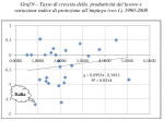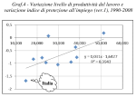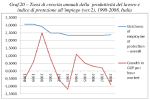 Infine è stato condotto uno specifico esercizio per l’Italia. In questo caso abbiamo rappresentato nei grafici gli andamenti dell’indice di protezione all’impiego e della produttività (PIL pro-capite e PIL per ora lavorata, sia nei livelli che nei tassi di crescita, oltre che il semplice PIL).