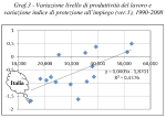 Per il nostro Paese, vi è evidenza che, nonostante la nota scarsa dinamica della produttività del lavoro, da fine anni novanta, ovvero dall’introduzione di normative che hanno progressivamente ridotto le protezioni all’impiego, ad iniziare dalla Legge Treu per passare a quella Biagi e successive, la riduzione dell’indice di protezione all’impiego si accompagna ad una riduzione della produttività del lavoro (nei tassi di crescita), oppure ad una scarsa varianza, e comunque verso il basso, del PIL pro-capite o della crescita del livello del PIL.