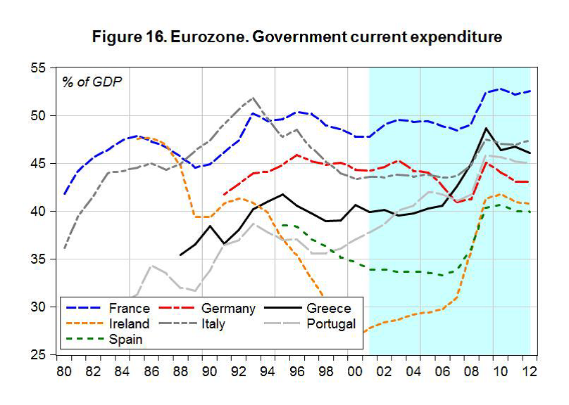 Yes! Let me say it another way. With the current institutional structure in the euro zone, the ‘demand leakages’ (which I like to call net savings desires) mean there will be deficits The only way any agent can spend less than his income is if another spends more than his income. It’s all a case of ‘inside money’ with regards to the euro. So all the ‘unspent income’ piling up in pension funds, corporations, and foreign central banks, people holding actual cash, etc. etc. mean some other agent must have spent more than his income. That can be private sector deficit spending (borrowing to spend) or the govt. spending more than its income. And all the data shows that private sector deficit spending was collapsing exactly as govt. deficit spending was increasing, all via the mechanism explained so well by Professor Terzi.