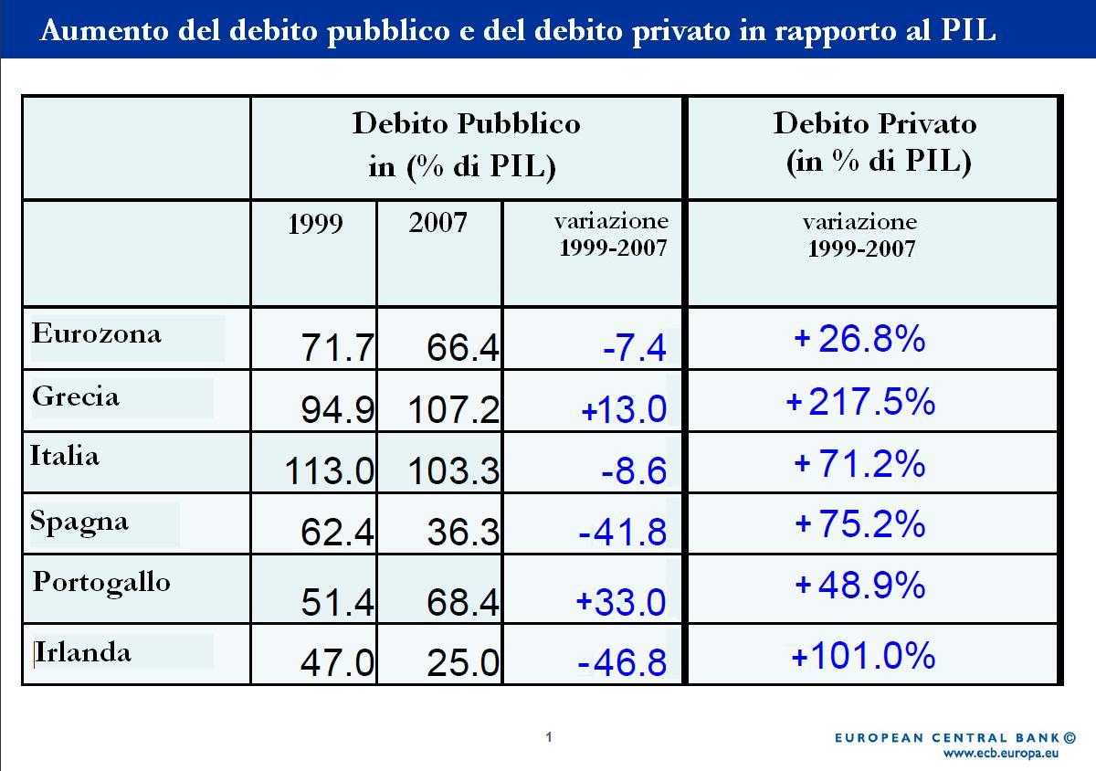 se il debito privato può spiegare l’irlanda e la spagna, è il debito pubblico l’elemento fondamentale a scatenare le crisi di italia e grecia (l’elemento scatenante, NON la prima causa della crisi).