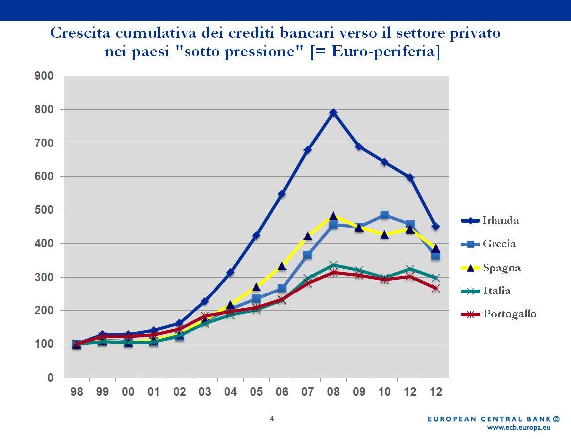 Il denaro a buon mercato (soprattutto quello all’usuale “tasso variabile” ) e’ una magnifica lusinga ….vi si entra di buon passo e baldanzosi per uscire dopo anni mesti e impotenti. È’ come acquistare una macchina a ottimo prezzo ma col motore fuso. Il “moltiplicatore del credito” poi e’ un effetto già noto ai banchieri centrali e Einaudi appena dopo pochi anni dal ’45 se è preoccupava al punto da imporre alle banche il deposito dei “depositi” in anni così’ difficili…..eppoi non stupisce che il denaro “facile” venga concesso dalle banche senza troppi riguardi (i mutui subprime insegnano). Ma tutto questo non spiega ancora nulla del baratro italiano. Ne’ l’Italia ha sofferto mai di questi mutui allegri. La spiegazione(sintetica) pare a me altrove: fisco rapace e soprattutto disincentivante e dopo decenni di questa cura anche l’economia più’ sana soccombe. In Austria gli utili reinvestiti scontano l’aliquota del 25%….semplice no. Non confondiamo il generale col particolare e, soprattutto, capiamo che senza una grossa dose di senso comune non si va lontano (per tutti coloro che predicavano il debito anche per le economie più’ floride). Mariano.